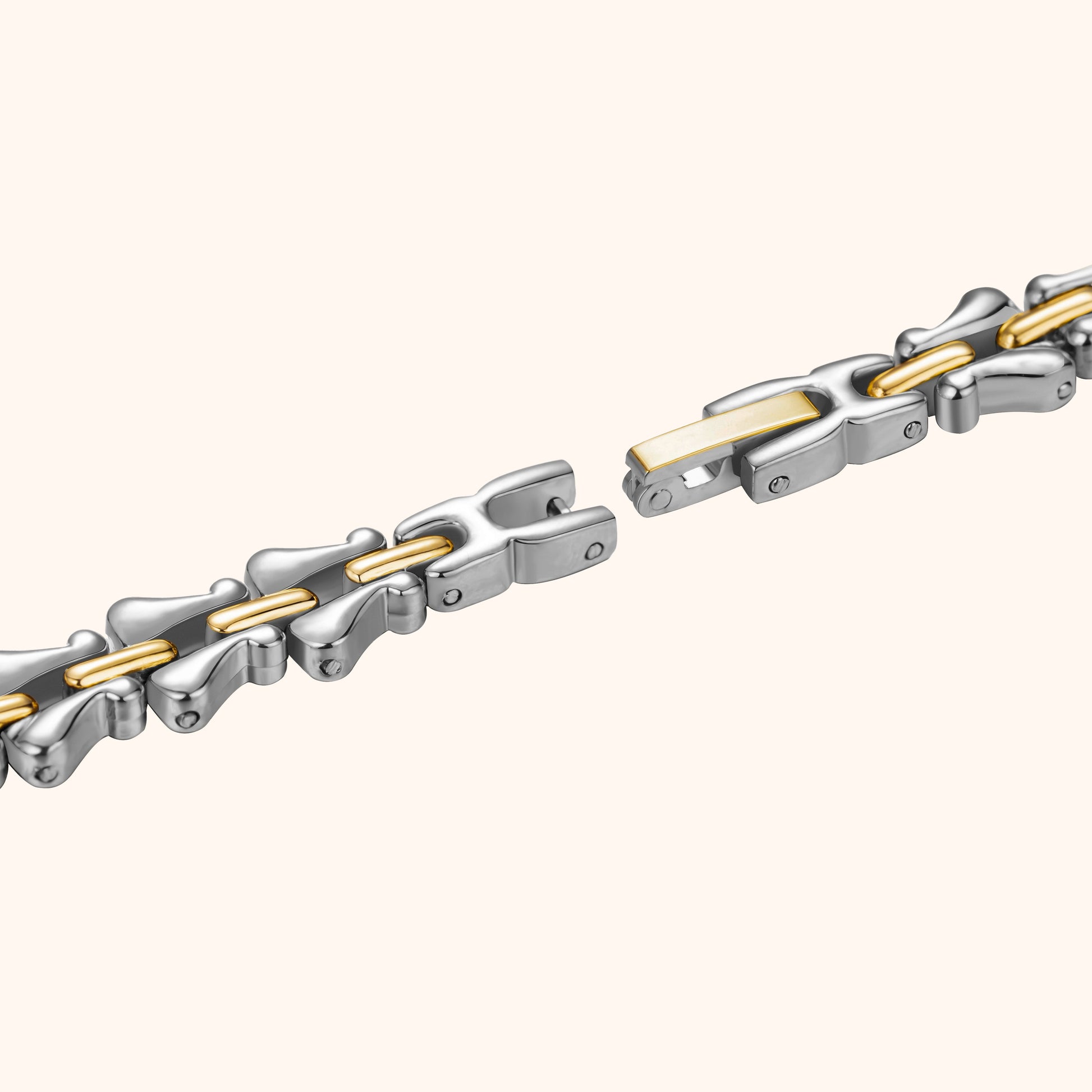 - Bracelet: Silver-plated brass and Gold-plated finish, adjustable