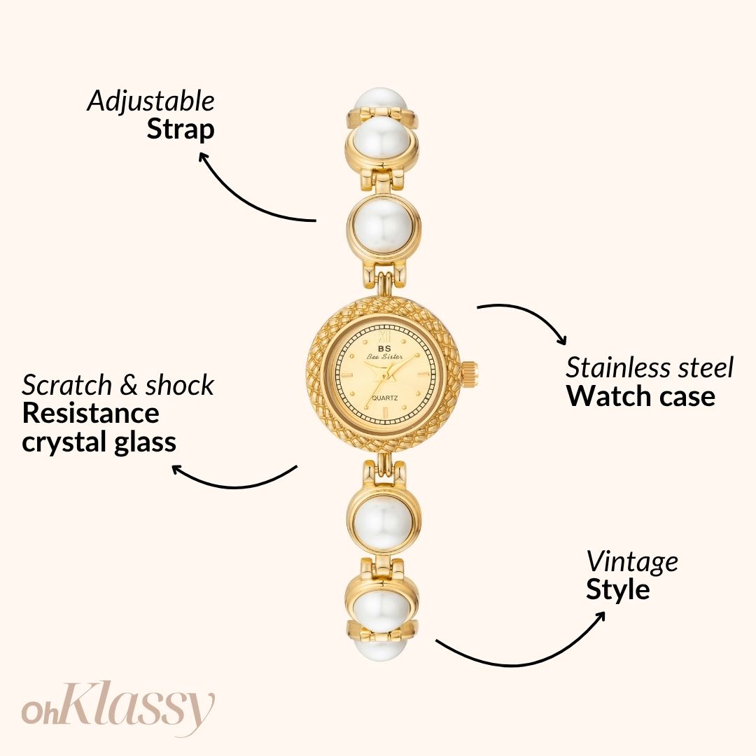 - Bracelet: Real natural pearl with gold-plated alloy, adjustable