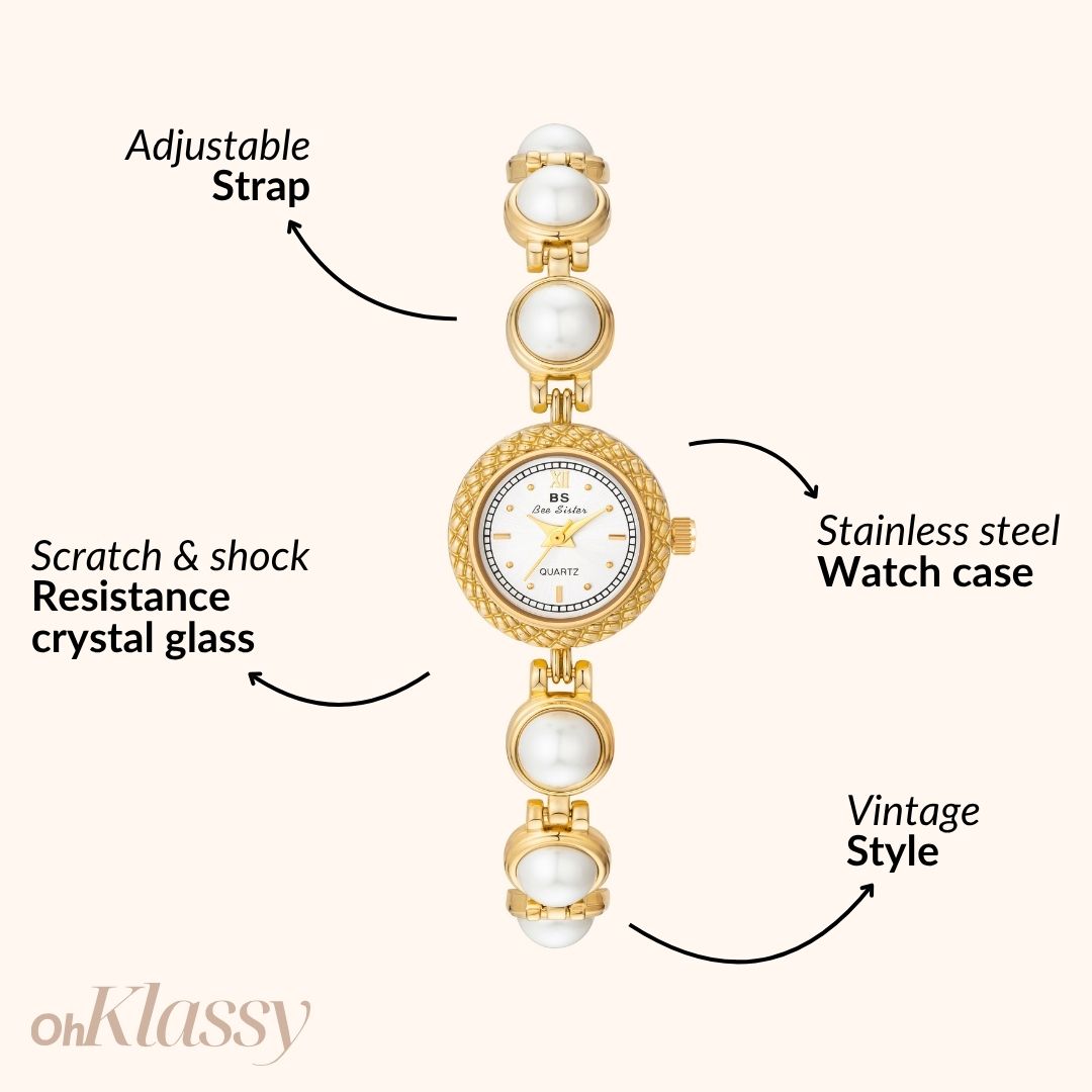 - Bracelet: Real natural pearl with gold-plated alloy, adjustable