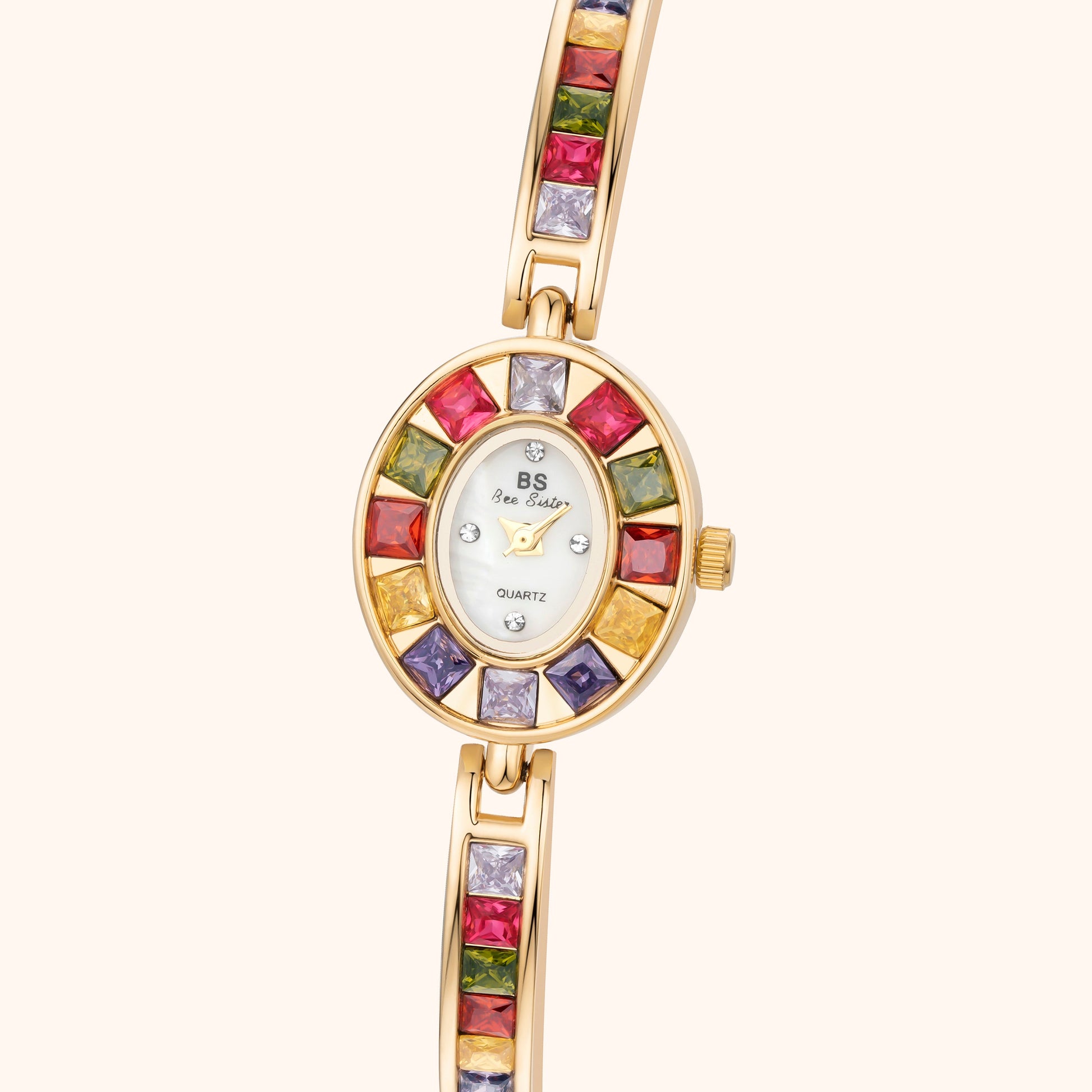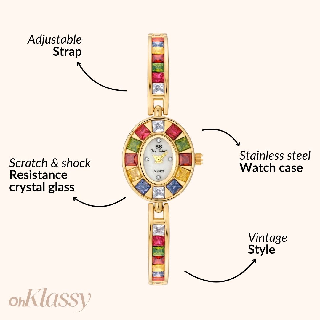 - Bracelet: Gold-plated alloy, adjustable
