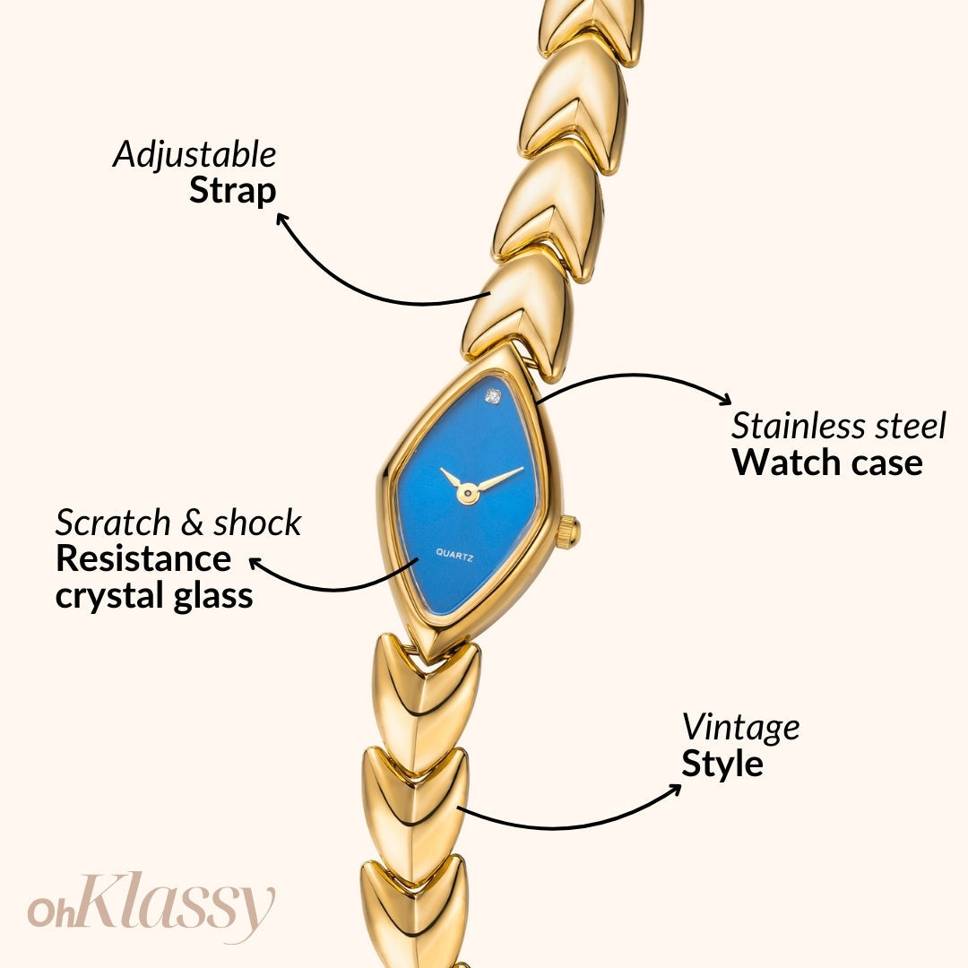 This elegant watch combines timeless design with modern durability. Expertly crafted to fit the female wrist, it features a 17 x 30 mm dial. The Lucille Watch offers the perfect blend of style and comfort.