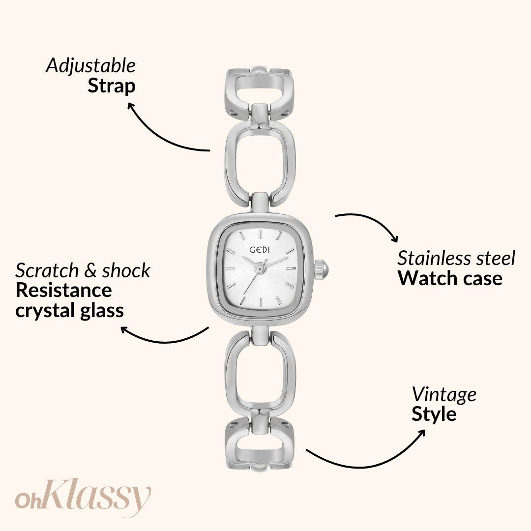 This elegant watch combines timeless design with modern durability. Expertly crafted to fit the female wrist, it features a 17 x 20 mm dial. The Malou | Silver offers the perfect blend of style and comfort.