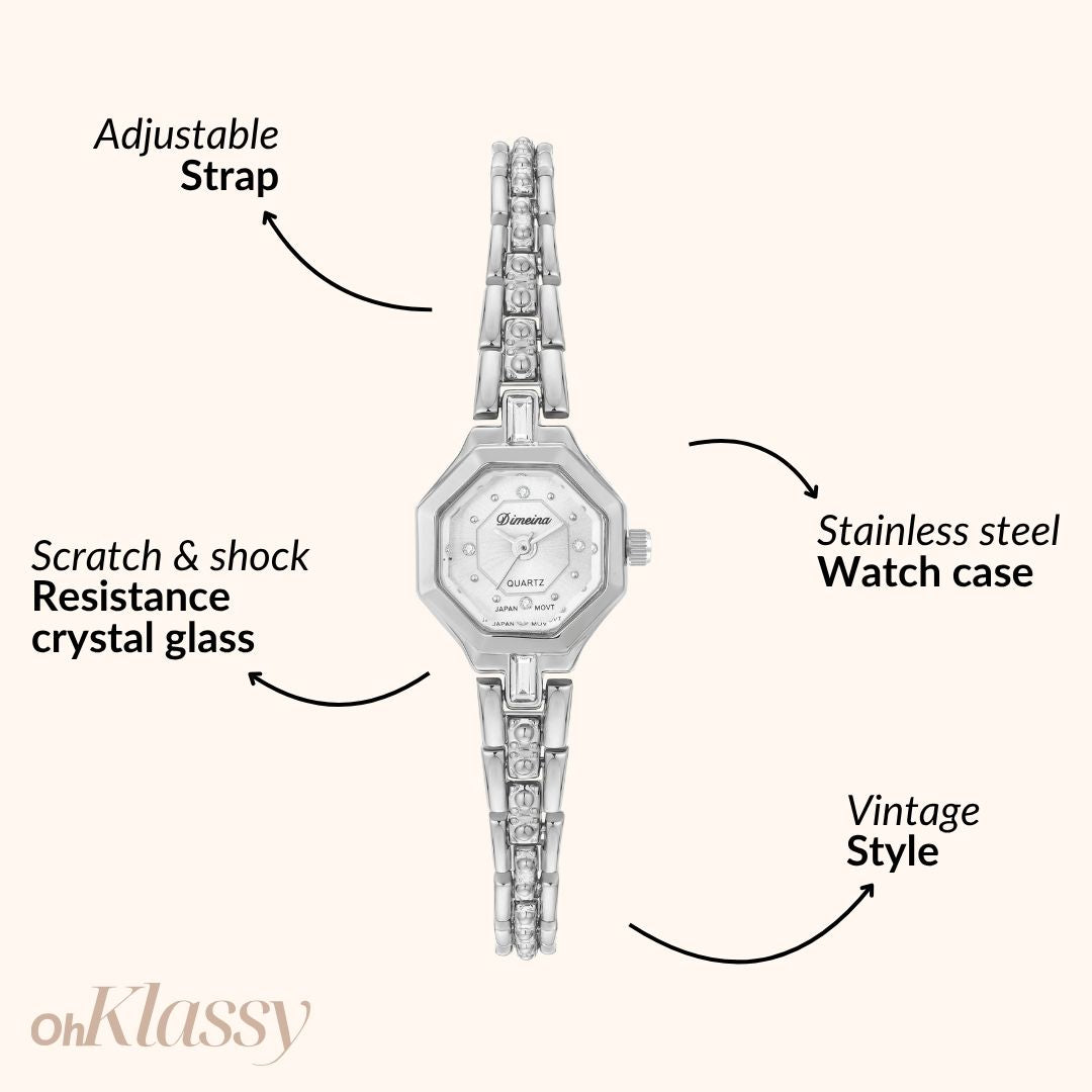 - Bracelet: Silver-plated alloy, adjustable